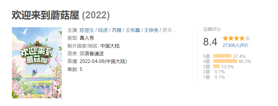 節(jié)目集結了在2007年大火的“0713男團”們,以其跨越13年的深厚友情為積淀,利用《向往的生活》中的“慢旅行真人秀”模式,推出了衍生節(jié)目——《歡迎來到蘑菇屋》,并獲得了口碑與熱度的雙重成功。