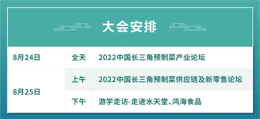 “2022中國長三角預制菜產(chǎn)業(yè)大會暨展會”將于8月24日-25日在蘇州合景萬怡酒店盛大舉行!本次大會暨展會為江浙滬地區(qū)首個預制菜專業(yè)主題展,將匯聚數(shù)十家預制菜龍頭企業(yè),攜最新產(chǎn)品亮相展示。并將定向邀約2000名來自全國各地連鎖餐飲總經(jīng)理、團餐企業(yè)負責人、商超便利采購總監(jiān)、電商平臺選品負責人、政企采購人員、預制菜上下游從業(yè)者、凍品批發(fā)商代理商等齊聚蘇州。打造”長三角經(jīng)濟圈預制菜產(chǎn)業(yè)一站式展示、交易盛會”!