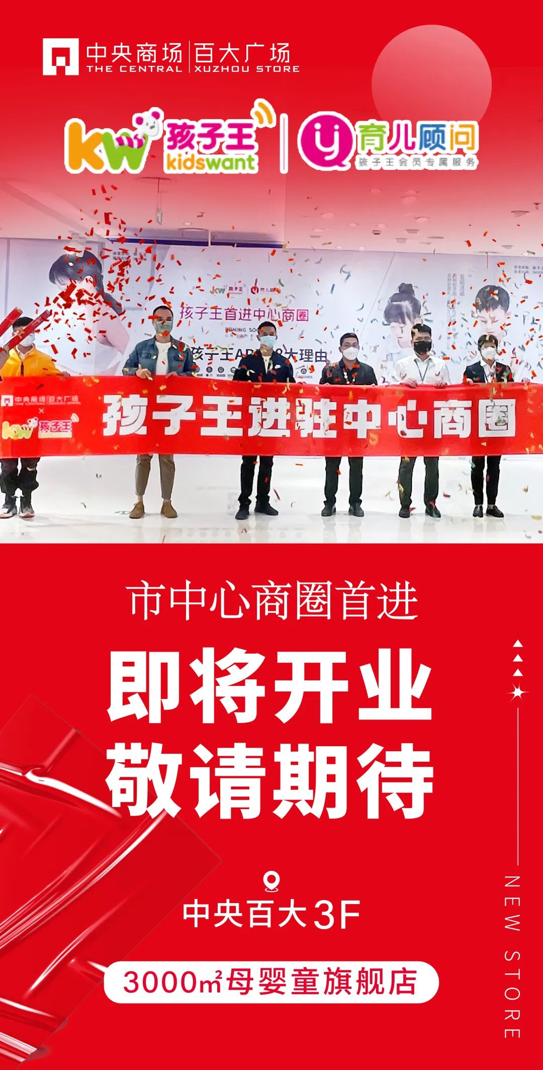 中央商場(chǎng)徐州店再添主力店,孩子王8月18日開(kāi)業(yè)