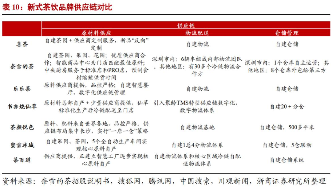 (新茶飲品牌供應(yīng)鏈對比/浙商證券)