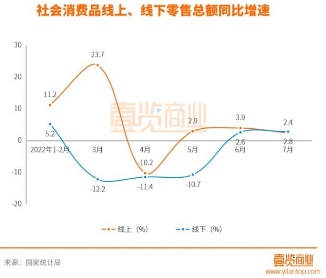 按經(jīng)營渠道分,7月份全國網(wǎng)上零售額10217億元,同比上升2.4%;線下零售額25653億元,同比上升2.8%。