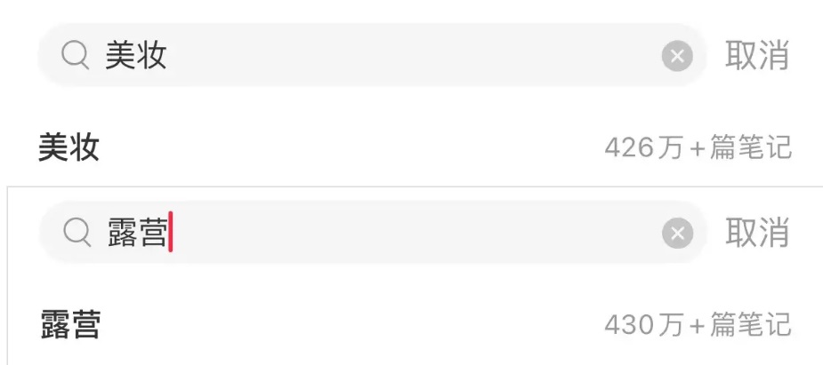 露營(yíng)、美妝筆記數(shù)量,圖/小紅書