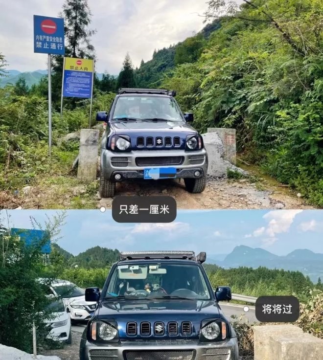 比如,安利游客躲避重慶南川風(fēng)吹嶺露營(yíng)基地“帳篷堆”,去附近的懸崖露營(yíng)。在相關(guān)帖子中,該博主還曬出其車輛穿越帶有“內(nèi)有嚴(yán)重安全隱患”“禁止通行”提示牌的合影照,以及他在完全沒(méi)有護(hù)欄裝備的懸崖處拍照的圖片。