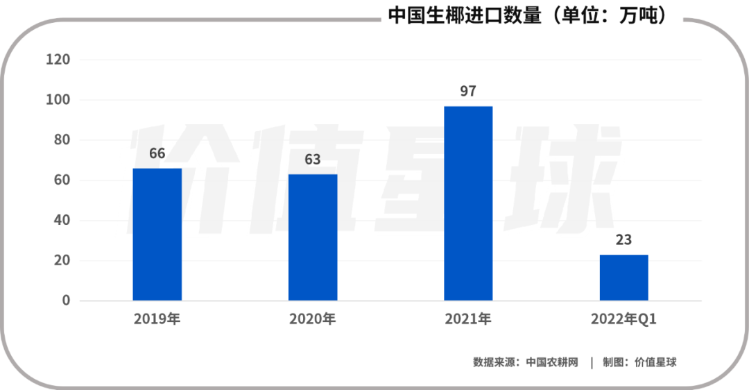 椰樹集團(tuán)董事長趙波此前也表示,椰樹集團(tuán)每年需要消耗椰子2億到2.2億個,其中從東南亞各國進(jìn)口的椰子占比高達(dá)90%-95%。