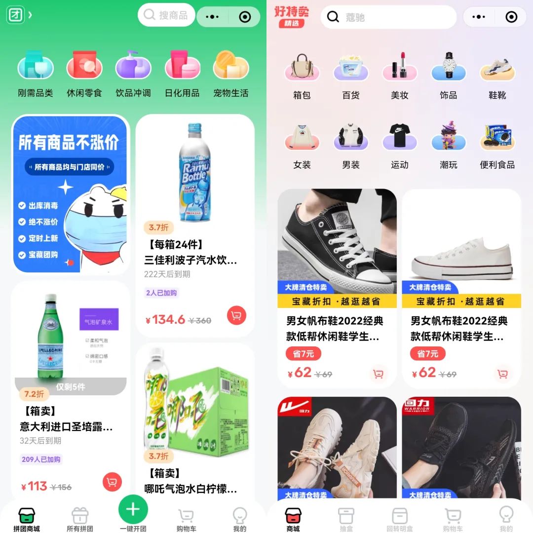 專注線下的好特賣,之前就開始逐漸入駐美團、餓了么平臺,現(xiàn)在也開始布局淘寶和微信小程序,開始了零售與拼團,而另一個好特賣相關聯(lián)的小程序,則開始涉及更多的服飾箱包美妝等商品。不過目前,這些淘寶店與小程序的使用人數(shù)并不多,關聯(lián)公司也是好特賣母公司持股100%的上海全抗科技有限公司。