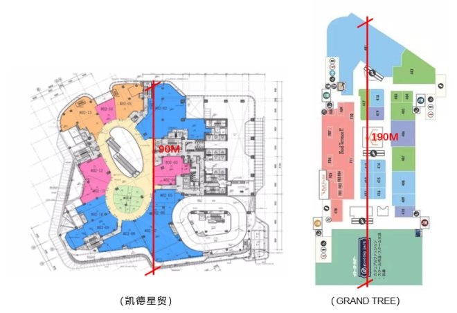 次主力店指中大型親子娛樂,中大型時尚零售,中大型家居零售,中大型家庭餐飲,健身房, KTV等;隨著體量增加,次主力店的面積提高