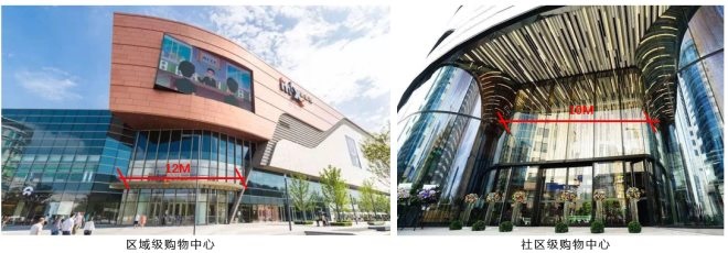 社區(qū)型商業(yè)主入口寬度一般控制在8-10M之間,區(qū)域型商業(yè)則控制在10-12 M之間。