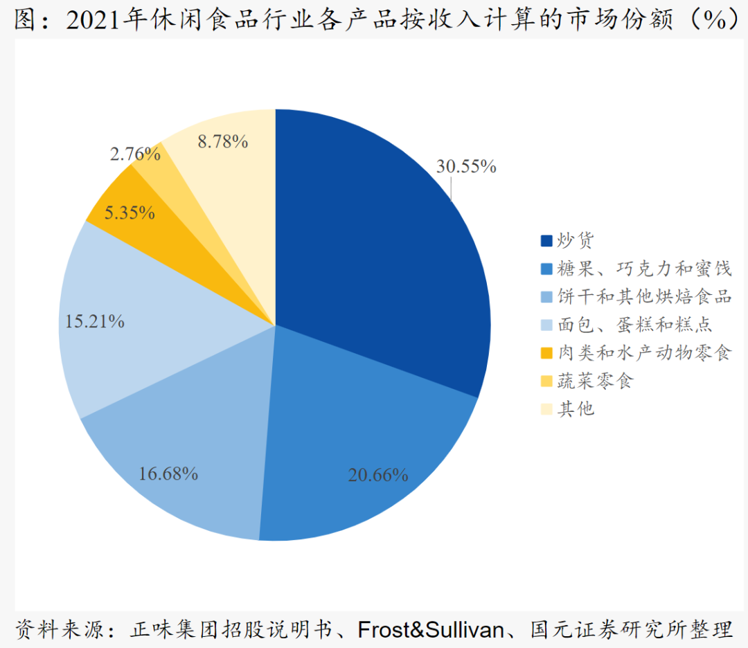 國(guó)元證券研究所數(shù)據(jù)顯示,炒貨超越糖果蜜餞,成為了2021年休閑食品市場(chǎng)的“主力軍”,市場(chǎng)份額達(dá)30.55%。