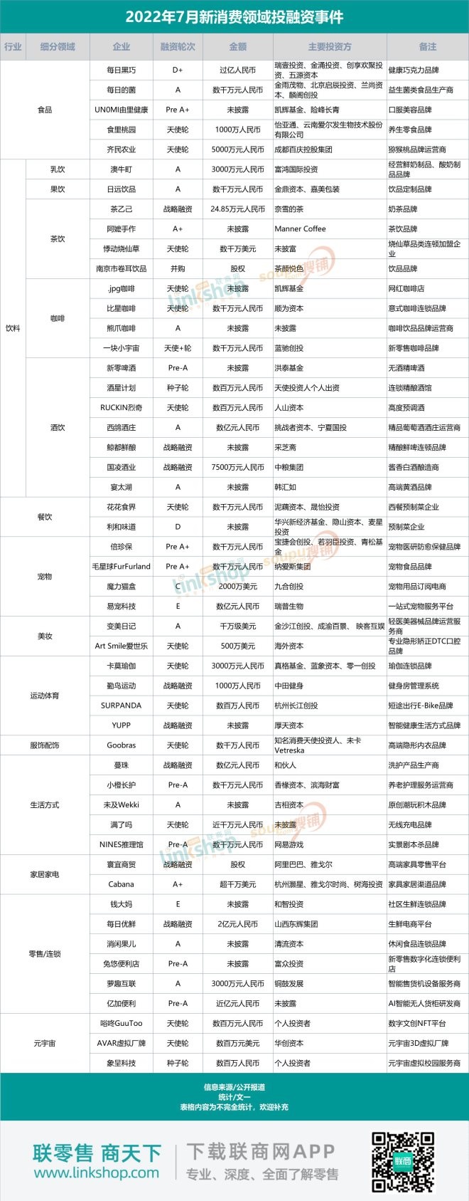 附:2022年7月份新消費品牌融資詳情