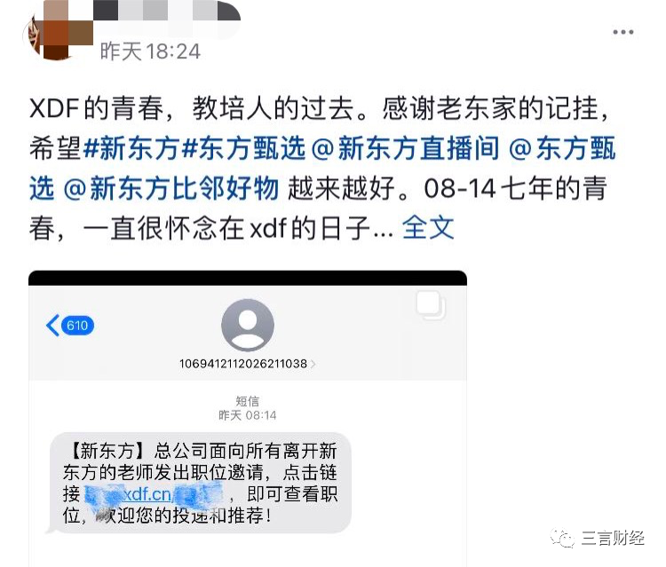 日前,有多名網(wǎng)友在社交平臺(tái)發(fā)文稱,他們收到了新東方向所有離開的老師發(fā)出的職位邀請(qǐng)。