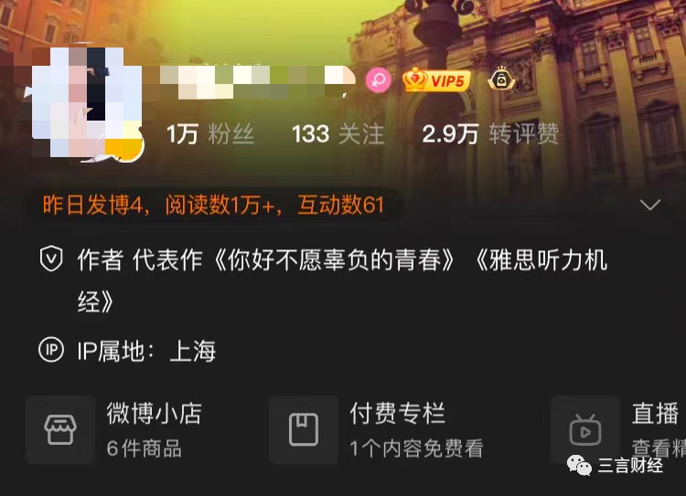 這位的微博認(rèn)證是作者,代表作《你好不愿辜負(fù)的青春》、《雅思聽力機(jī)經(jīng)》。