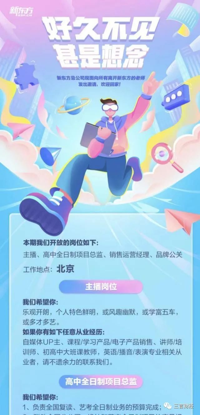 雖然新東方號(hào)稱是“總公司現(xiàn)面向所有離開新東方的老師發(fā)出邀請(qǐng)”,但光是去年因雙減被裁的員工就有6萬人左右,很顯然,四個(gè)崗位并容不下這么多人。