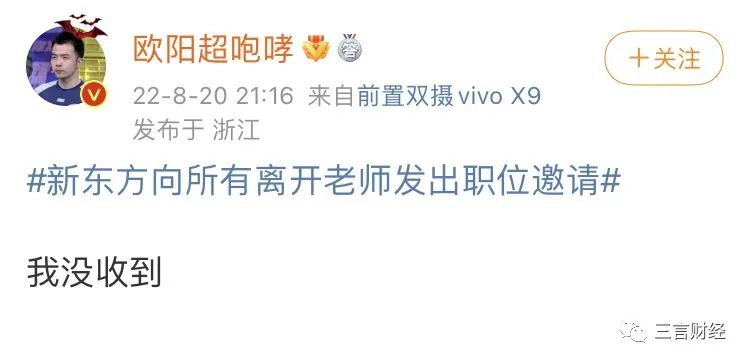 歐陽超也就此次新東方邀請(qǐng)回歸的舉動(dòng)發(fā)聲了,不過他是沒收到邀請(qǐng)。
