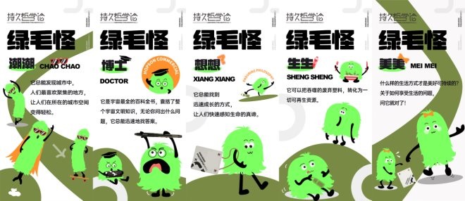 “綠毛怪家族”是持久哲學(xué)論5個(gè)不同緯度可持續(xù)生活態(tài)度的具象化表達(dá)