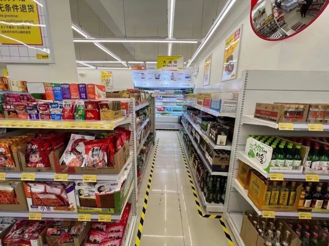 面積在150-180平米、24小時全時段營業(yè)的硬折扣社區(qū)超市,是折扣牛的主力店型。據(jù)悉,折扣牛精選了約800個SKU,涵蓋米面糧油、乳制品、方便食品、休食、烘焙食品、酒水飲料、日用百貨等多個品類,基本滿足社區(qū)居民家庭日常剛需。