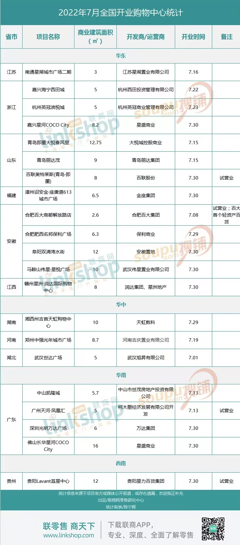 附:2022年7月全國(guó)新開商業(yè)項(xiàng)目統(tǒng)計(jì)表