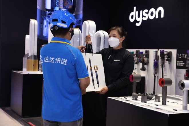 達(dá)達(dá)快送騎士正在戴森門店取貨小時(shí)購訂單