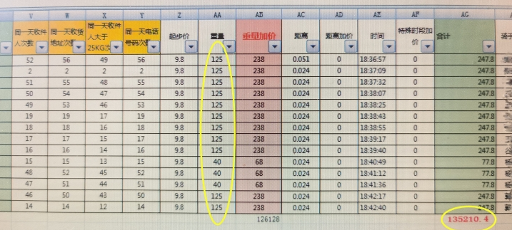 正常補(bǔ)單的配送費(fèi)在每單9.8元,但加重分量后,最高可達(dá)每單200余元。