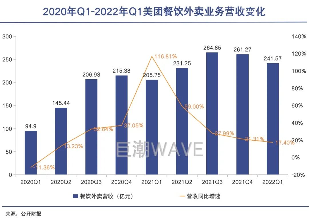今年一季度,美團(tuán)的餐飲外賣(mài)、到店旅游以及新業(yè)務(wù)收入均出現(xiàn)環(huán)比下滑,其外賣(mài)業(yè)務(wù)增長(zhǎng)自去年一季度達(dá)到最高峰之后,就開(kāi)始持續(xù)下行。