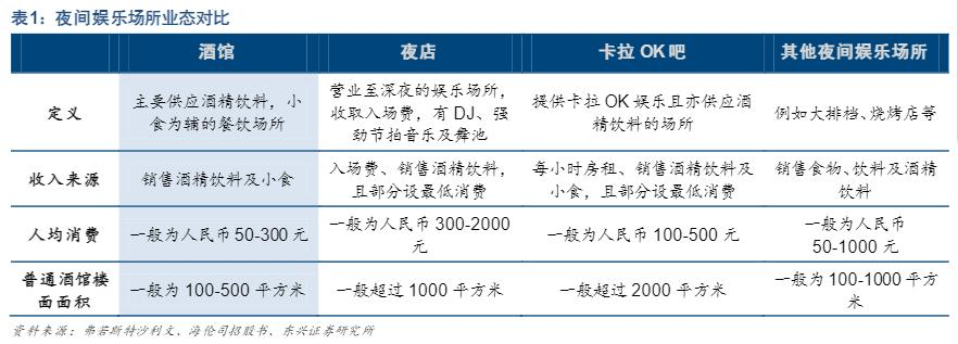 夜間娛樂場所業(yè)態(tài)對比 圖源/東興證券