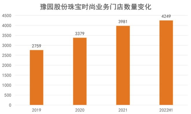 據(jù)豫園股份財報披露,其珠寶時尚集團上半年終端網(wǎng)點凈增290家,珠寶品牌“老廟”和“亞一”連鎖網(wǎng)點達到4249家;仡櫧鼛啄陙恚渲閷殨r尚的門店數(shù)量一直呈現(xiàn)上升趨勢,即使在今年疫情影響之下,依然實現(xiàn)了數(shù)量增長。