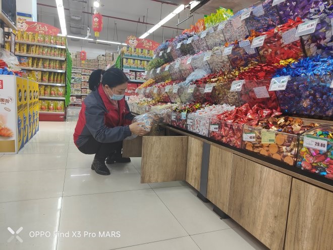 馬群不僅是商品質(zhì)量安全員,有時(shí)也變身為理貨員。營業(yè)前,她在生鮮區(qū)域檢查商品質(zhì)量,如果看到營業(yè)柜臺(tái)快要空了,她就和生鮮同事一起,搬貨上貨,盡快讓貨架豐滿起來。合力同事之間,互稱為“家人”,所謂的家人,除了平;突ブ猓褪窃诰o急時(shí)刻,大家不計(jì)分工地幫忙。在門店,如遇員工生病,或者親屬去世,門店的管理者都會(huì)親自慰問,送去公司的問候,這也是“家人”之間的溫暖。