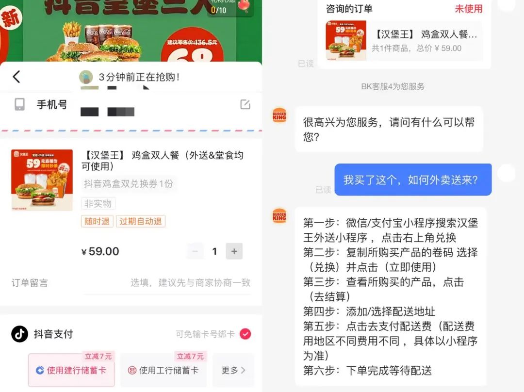 第三種,通過美團(tuán),用戶下單后獲取美團(tuán)核銷碼,再去美團(tuán)重新下單,然后由美團(tuán)配送體系履約。這種復(fù)雜的操作讓消費(fèi)者和商家皆感疲憊。