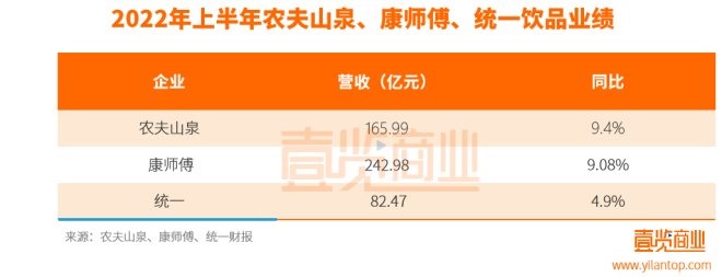 另一邊,據(jù)康師傅和統(tǒng)一各自的財(cái)報(bào)顯示,康師傅上半年飲品業(yè)務(wù)營收242.98億元,同比增長9.08%;統(tǒng)一上半年飲品業(yè)務(wù)營收82.47億元,同比增長4.9%。在消費(fèi)市場整體進(jìn)入寒冬的大環(huán)境下,和同行相比,農(nóng)夫山泉上半年的營收和凈利潤看起來仍然保持了不錯(cuò)的增長勢頭,整體看起來欣欣向榮。