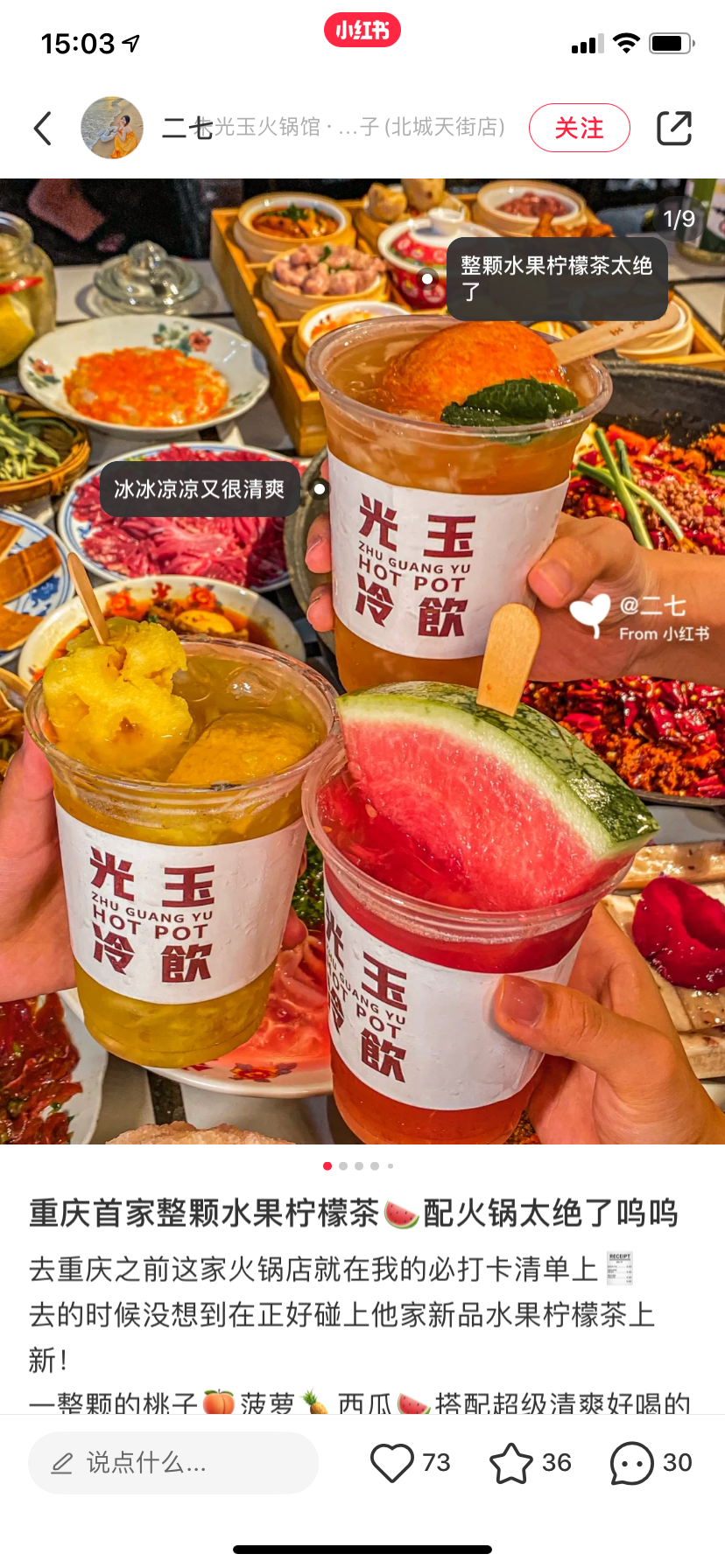 比如,成都的吼堂火鍋,就研發(fā)了大熊貓的飲品,芭樂雪花冰……;朱光玉可以看到西瓜、菠蘿、檸檬的光玉冷飲系列,都不輸專業(yè)飲品店。