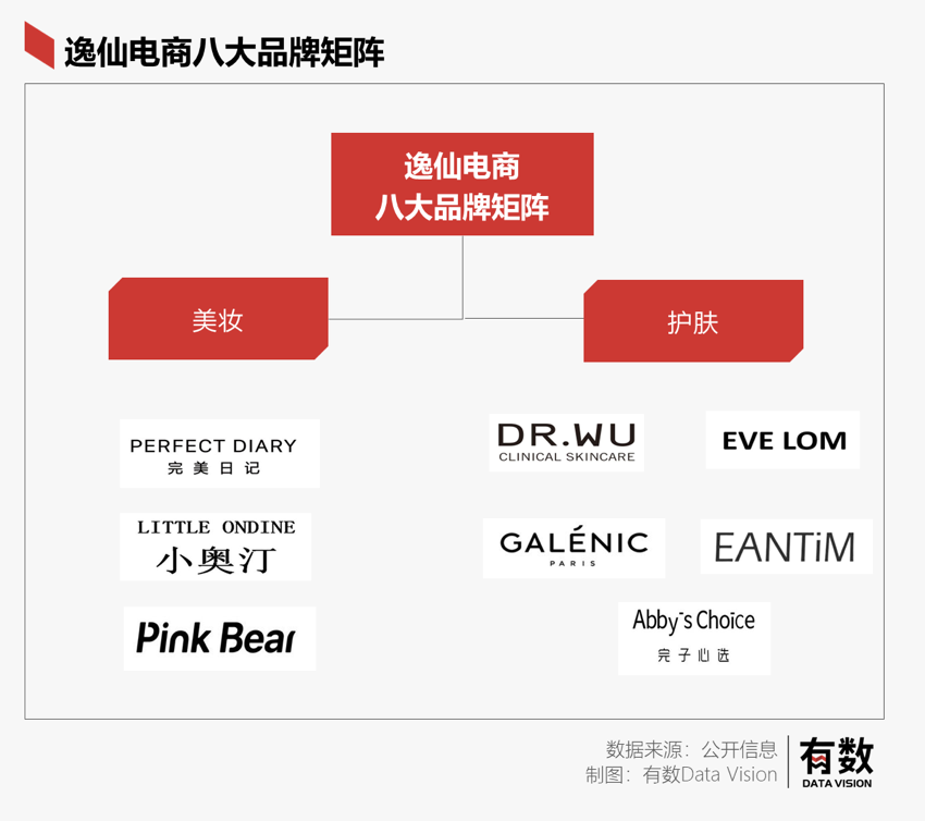 可以看出護(hù)膚品的賽道是相對(duì)寬敞好做的,母公司逸仙電商隨即孵化了完子心選(AbbysChoice),同時(shí)還收購(gòu)了法國(guó)的高端美容護(hù)膚品牌Galenic、英國(guó)貴婦EVE LOM以及刷酸界知名品牌DR.WU達(dá)爾膚。