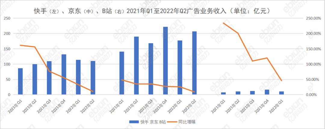 廣告收入從三位數(shù)增長降低為雙位數(shù)的還有嗶哩嗶哩。