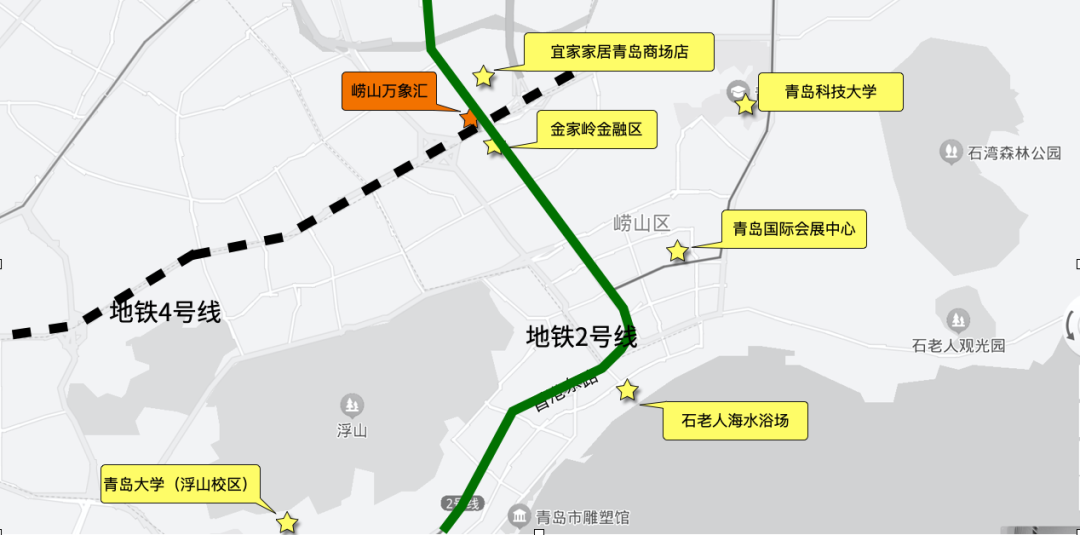此外,青島國際會展中心、石老人海水浴場等城市地標,青島科技大學、青島大學等高校,均位于青島嶗山萬象匯周邊3公里范圍內(nèi)。