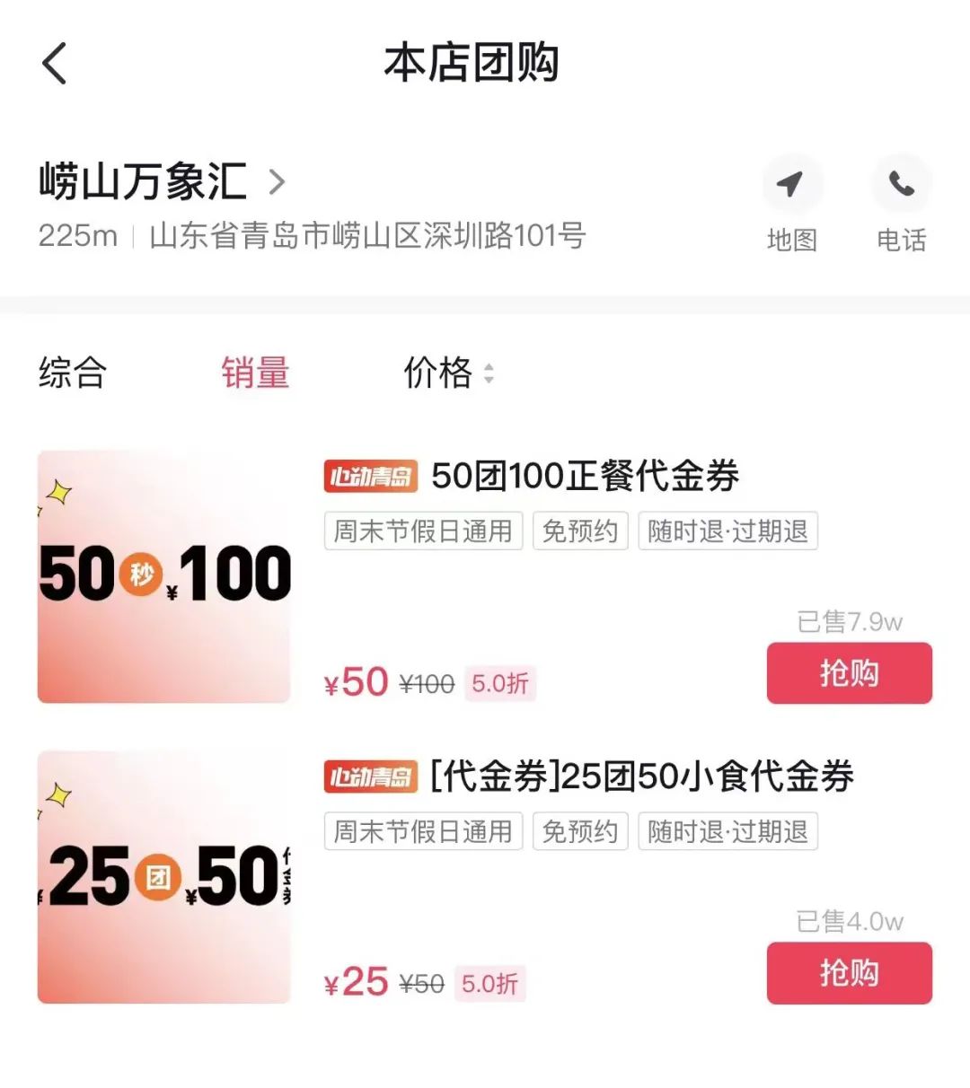 開業(yè)前,青島嶗山萬象匯在抖音直播間上線了餐飲代金券,截至目前已共計售出近12萬張。項目全品類、高能級餐飲組合,發(fā)揮出了「王炸級」效果。