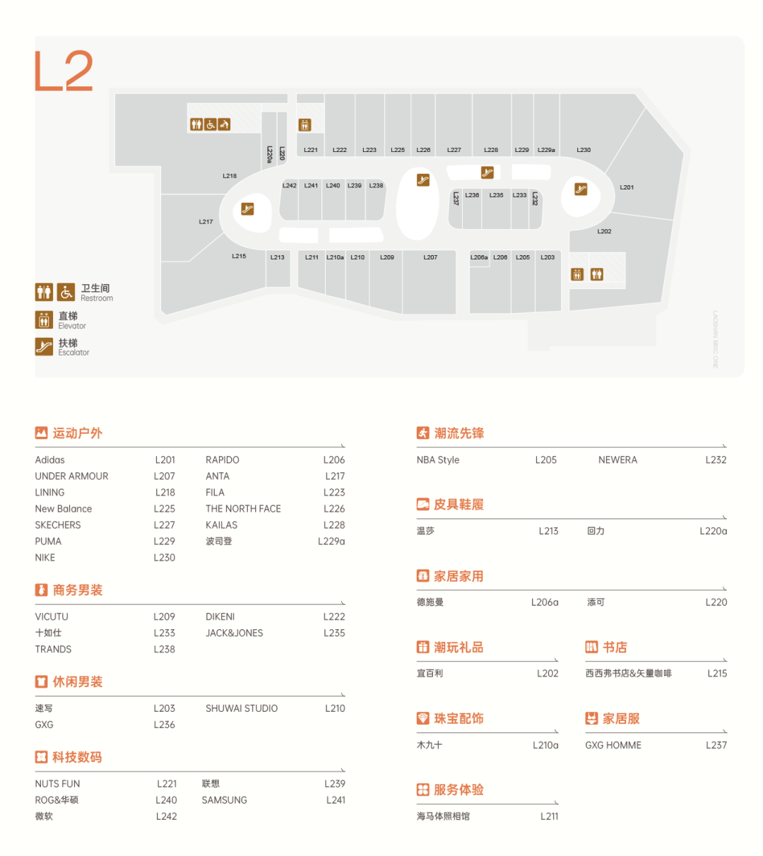 L1層的品牌門店以國際二線、潮流運動、科技數(shù)碼、新能源汽車為主。