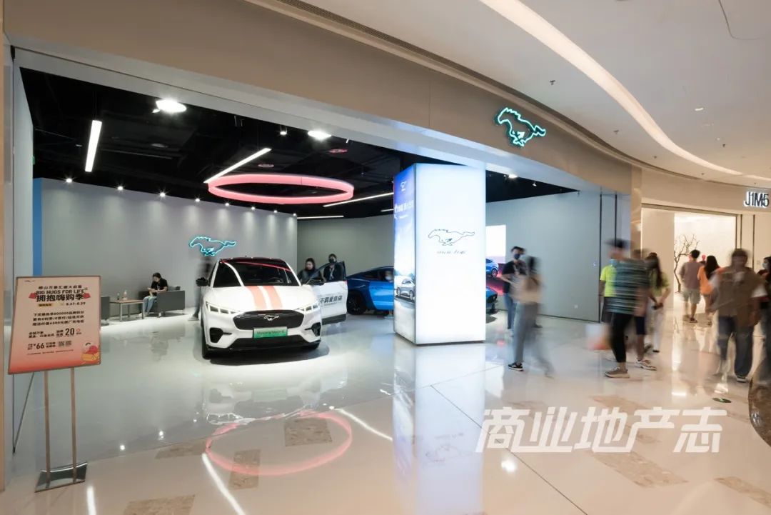 該樓層南端的1號門入口附近的門店是蔚來汽車、極氪汽車、福特野馬汽車三大新能源汽車品牌,售價30萬起,直指城市新中產(chǎn)和高凈值人士消費需求。據(jù)悉,此處未來還有升級調(diào)整的規(guī)劃。