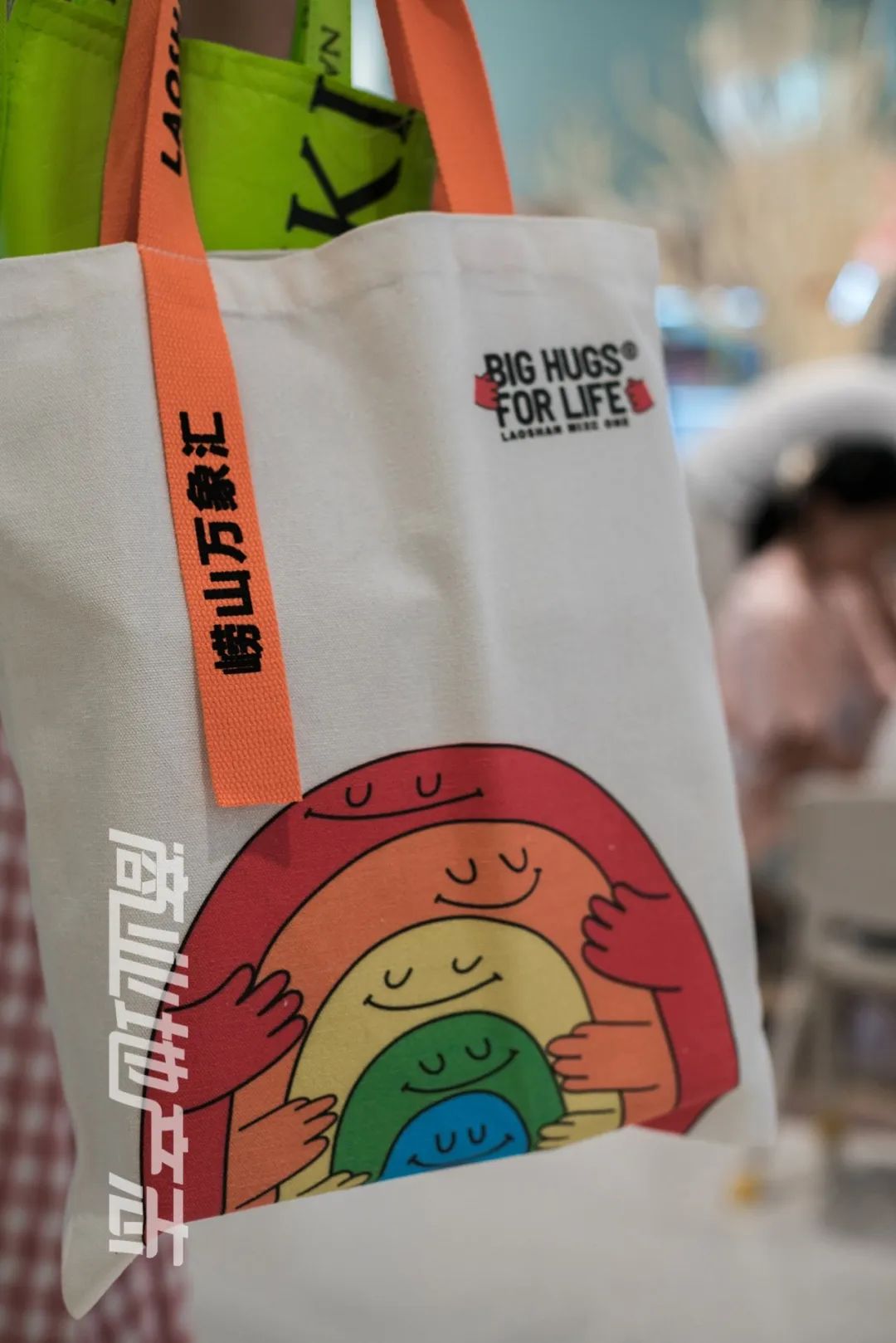 而Huggers 抱抱人形象,也不僅僅出現(xiàn)在了深圳路沿線,而是在幾乎可以想象到的任何地方,包括但不限于玻璃幕墻、指示牌、電梯間、開業(yè)邀請函、T恤、帆布包、氣球。