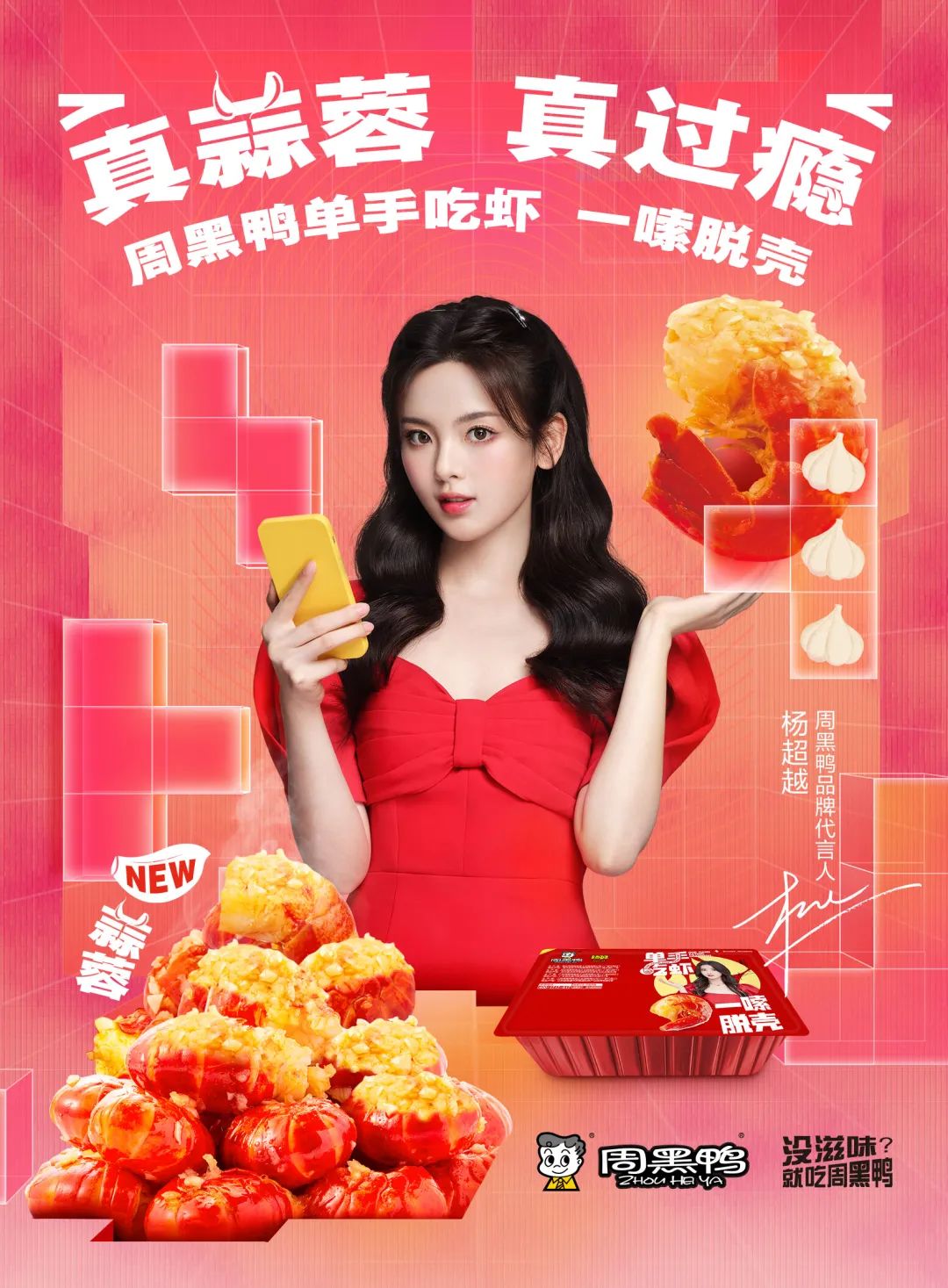 2022年上半年,周黑鴨官宣了全國品牌代言人——楊超越,這位人氣頗高的元氣少女帶頭炫起了小龍蝦蝦球,親身示范了“邊刷手機邊吃蝦,單手吃蝦頂呱呱”的刷劇新姿態(tài)。