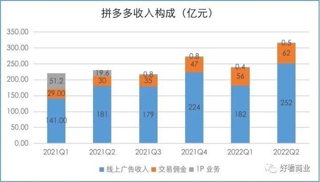 尤其是在Q2,拼多多營收314.4億元,同比增長36%,市場預(yù)期為236億元。其中,最大收入來源——電商廣告業(yè)務(wù)營收252億元,同比增長39%,環(huán)比漲超38.5%,遠(yuǎn)高于市場預(yù)期。