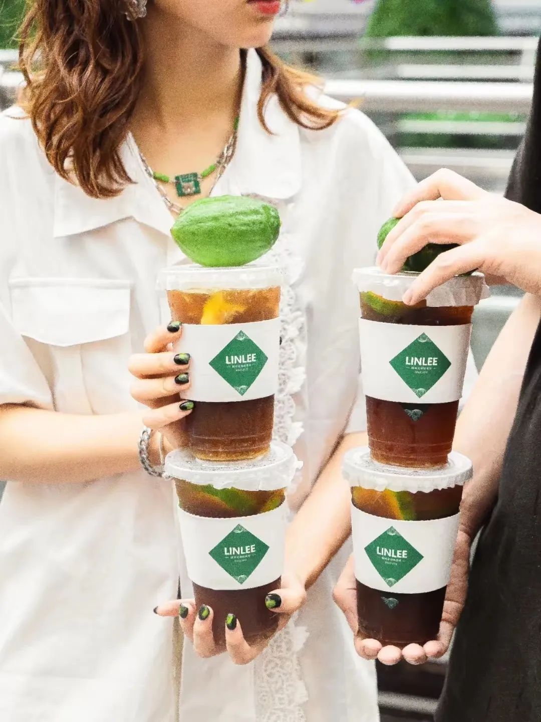 LINLEE更是選擇將咖啡與檸檬茶相結(jié)合,推出了打工場(chǎng)景適用的咖啡手打檸檬茶,以及與華熙生物聯(lián)合推出的加入了水肌泉玻尿酸水的黃皮快樂水等等。