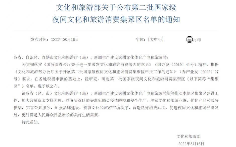 ▲第二批國家級夜間化和旅游消費集聚區(qū)名單正式公布。圖源:國家文旅部網(wǎng)站