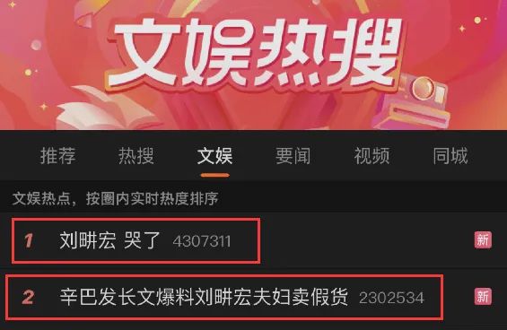 8月30日晚,一則“劉畊宏哭了”的話題也登上微博熱搜,網(wǎng)友紛紛猜測(cè)是否與辛巴的爆料有關(guān)。