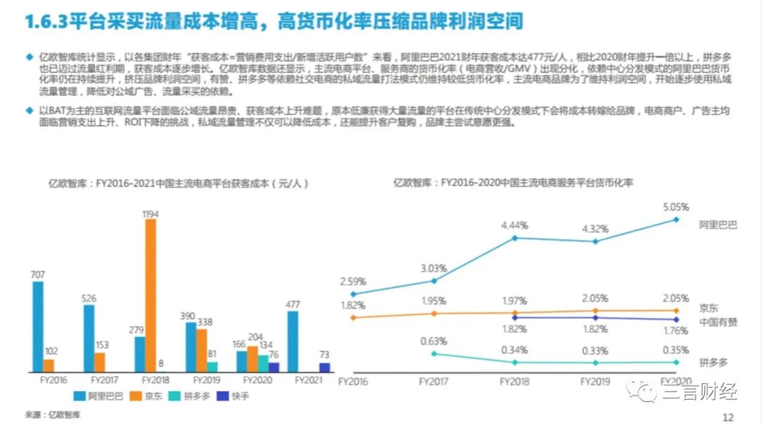 今年3月,據(jù)億歐智庫(kù)發(fā)布的數(shù)據(jù)顯示,阿里2021財(cái)年獲客成本為477元,相比2020財(cái)年提升近2倍,達(dá)到近4年來(lái)最高點(diǎn)。據(jù)了解,拼多多獲客成本為578元,京東為384元,均處于高位。