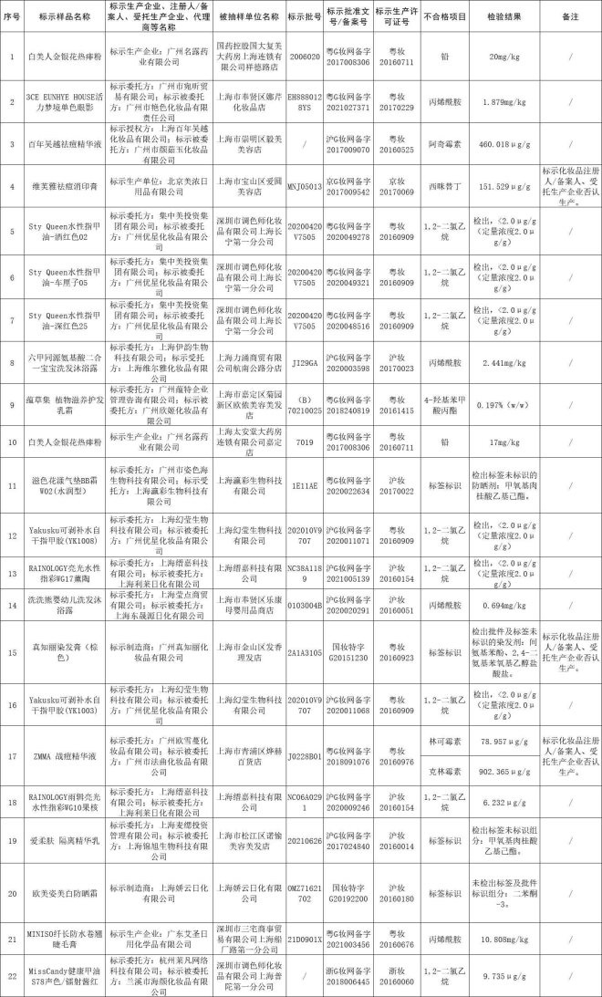 8月29日,上海市藥品監(jiān)督管理局發(fā)布了關(guān)于2022年第2期化妝品監(jiān)督抽檢質(zhì)量通告。