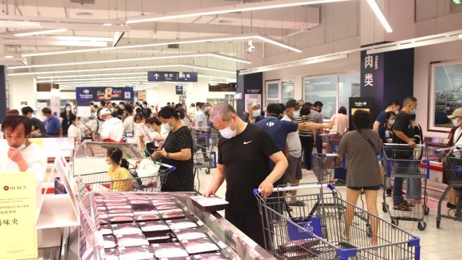 上海嘉定區(qū)南翔家樂福會員店內(nèi)消費者熱情高漲
