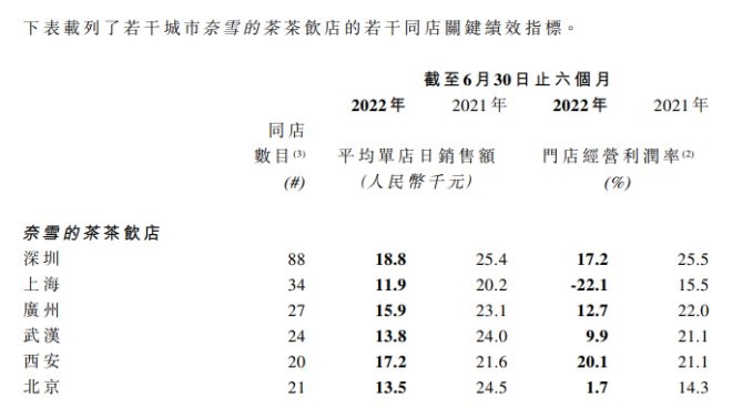 與此同時(shí),上半年奈雪的茶位于深圳、上海、廣州、武漢、西安、北京等多個(gè)主要城市的若干同店,平均單店日銷售額和門店的經(jīng)營利潤率均出現(xiàn)不同程度的下降。