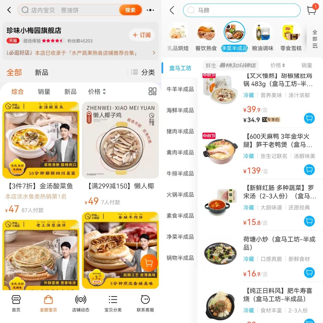 盒馬鮮生、叮咚買菜和永輝超市都有預(yù)制菜的零售服務(wù),不少社區(qū)超市與社區(qū)團(tuán)購也包含生鮮食材以及預(yù)制菜產(chǎn)品。