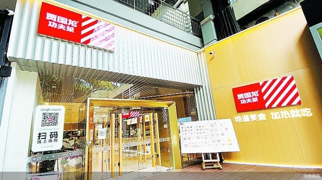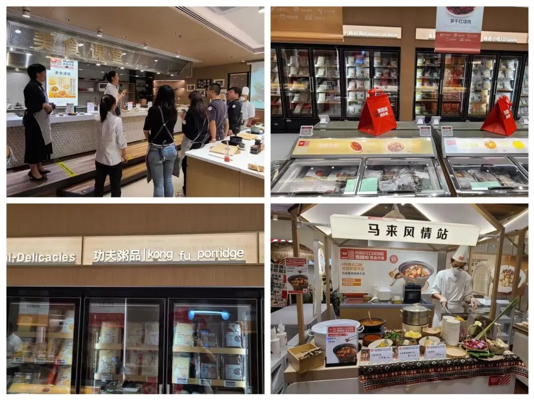 這1600㎡中,80%面積的市集+20%面積的預制菜零售超市,讓“新店”主打模型浮出水面。在消費者逛、吃、玩,品嘗了各式美食后,在市集一旁就是緊挨著的“美食超市”。