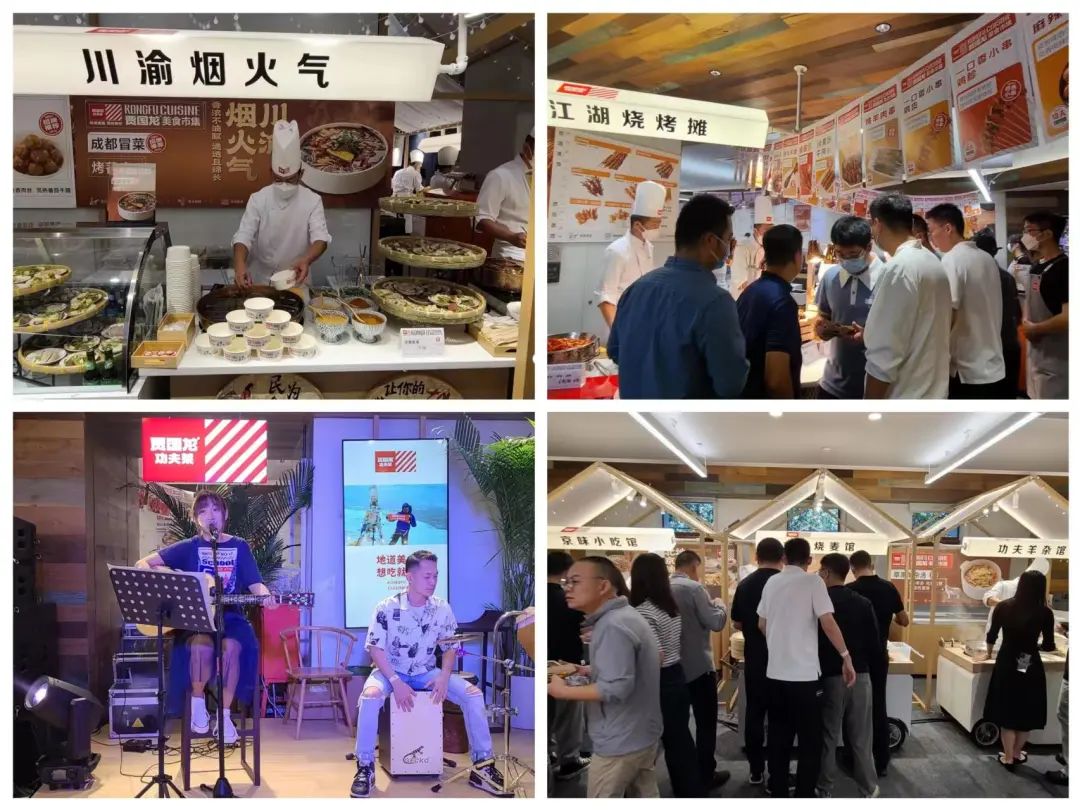 “功夫煲仔飯”、“功夫粵菜館”、“川渝煙火氣”、“江湖燒烤攤”、“深夜小酒館”……一邊是滋滋冒著鍋氣的全球美食;另一邊親子互動、美食課堂聚集了不少家長和孩子;而不遠處,氛圍感十足的現(xiàn)場歌手“開唱”,一時間熱鬧十足。