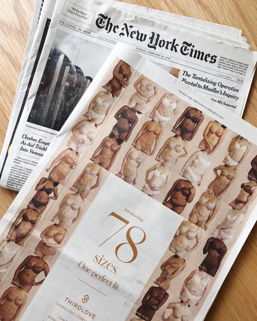 比如在美國這一波DTC浪潮中起家的內(nèi)衣品牌ThirdLove,其能夠給消費者提供78個碼數(shù)的選擇,并成功地將「半碼」這一概念深入人心。創(chuàng)始人在創(chuàng)辦品牌之初還提到,當(dāng)時美國市售的內(nèi)衣品牌,維密大概有36個尺碼,CK大概是20多個,還有一些品牌更是簡單地區(qū)分為XS、S、M、L、XL,這完全不能滿足消費者的實際需要。