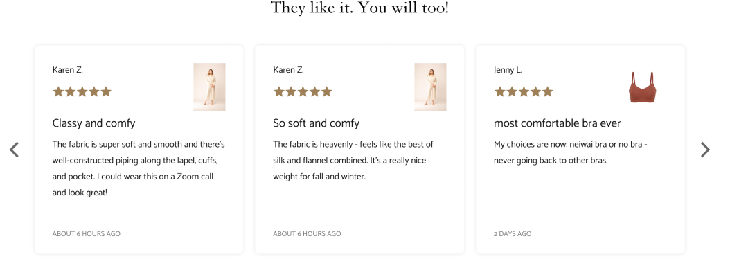 Samantha Y. 是一個懷孕六個月的母親,她在今年注意到這個來自中國的內(nèi)衣品牌。由于妊娠階段的胸圍從32A增長至34C,很少能找到合適的胸衣,當(dāng)她偶然買下內(nèi)外的云朵無尺碼內(nèi)衣時,被這款文胸的舒適度和服帖度驚喜到了。